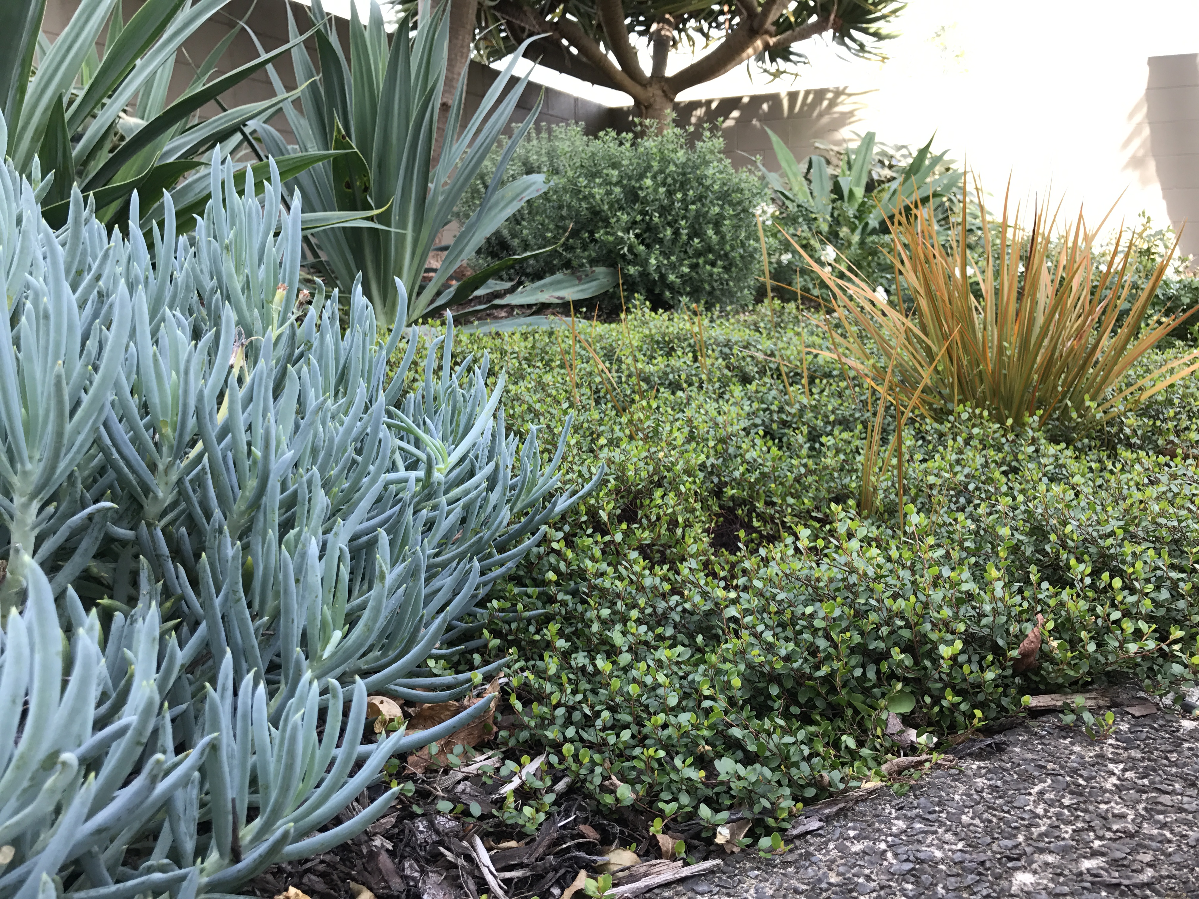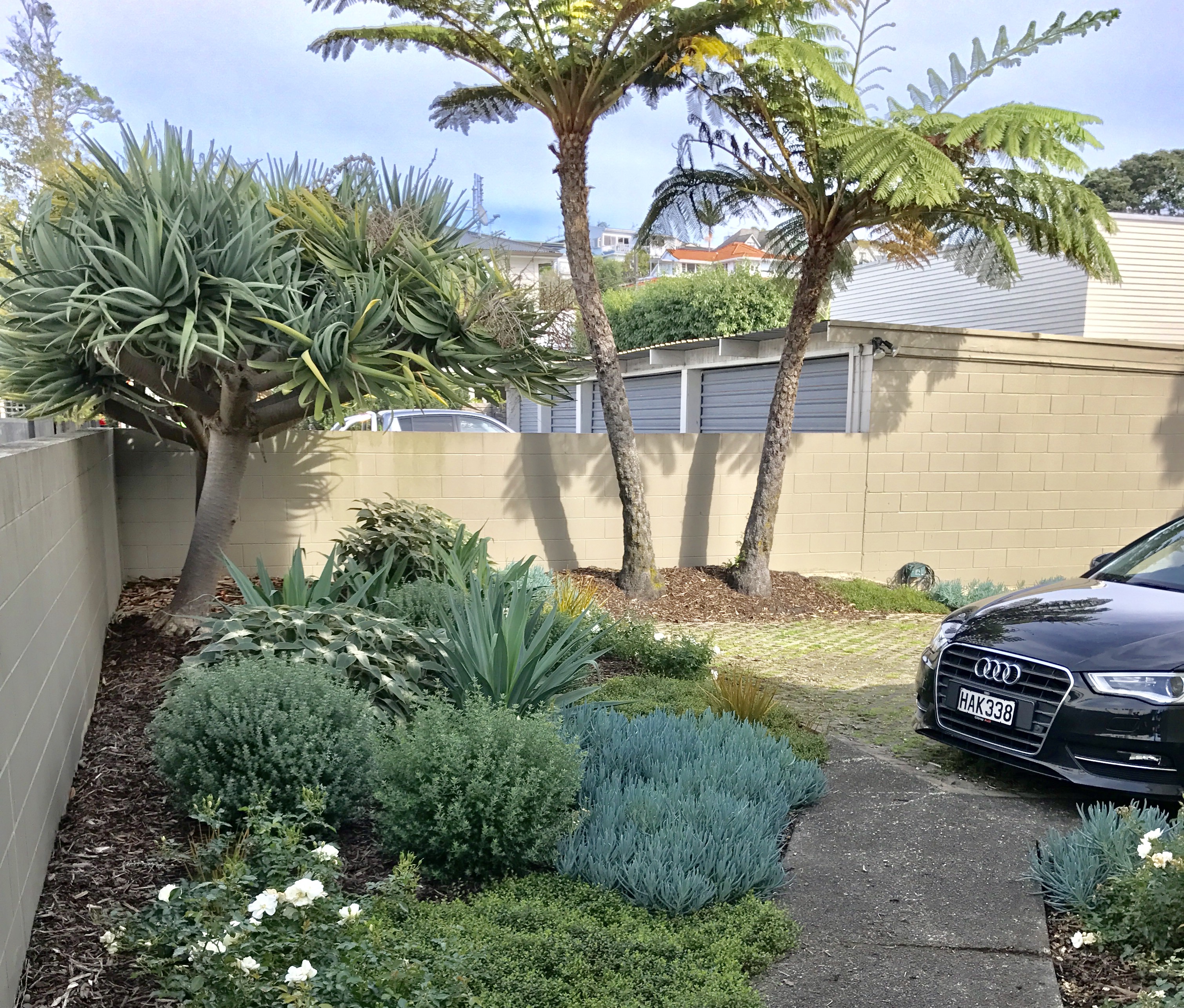A dry, shady site now has lovely street appeal. This textural planting was achieved using our unique New Zealand natives.