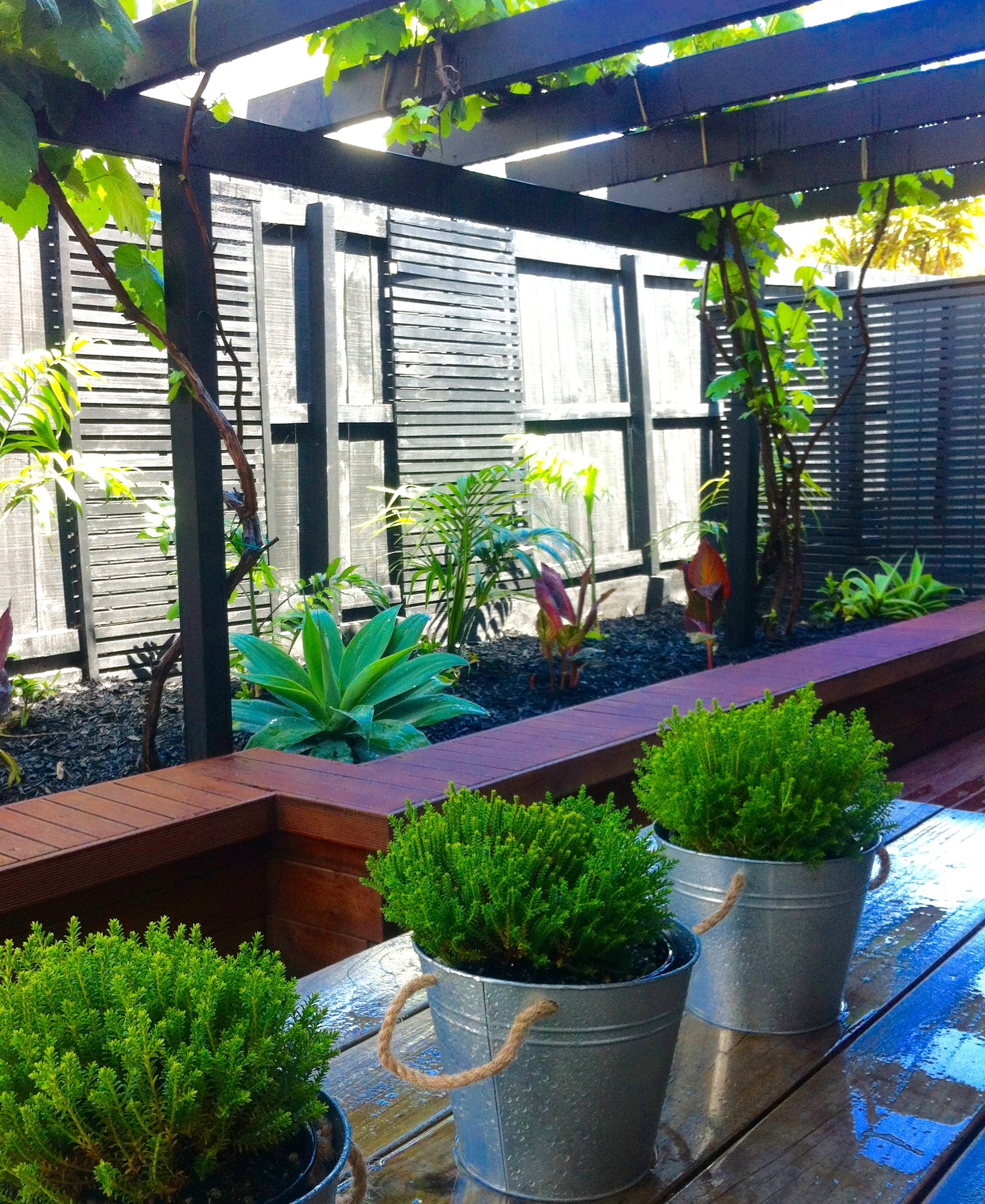 This coastal townhouse was being prepared for sale. A subtropical style was chosen to create a lush, intimate courtyard in a previously neglected rear deck.
